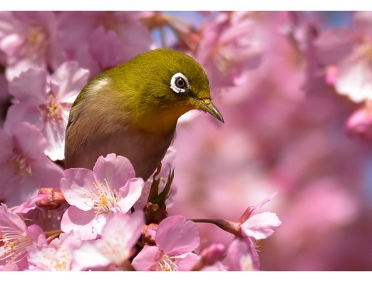 そろそろ河津桜が満開かと、長居公園に 丁度満開の桜にメジロが乗ってくれました