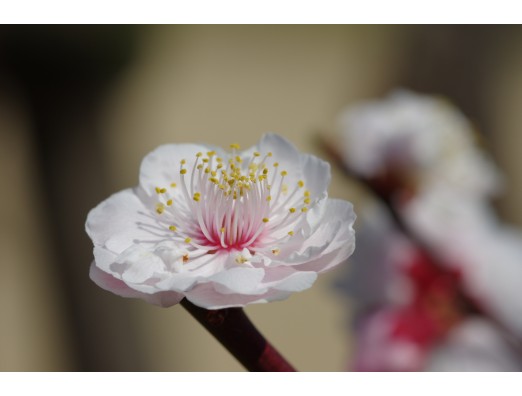 2017.3.20撮影 空に向かって咲いている一輪の梅に出会えました。