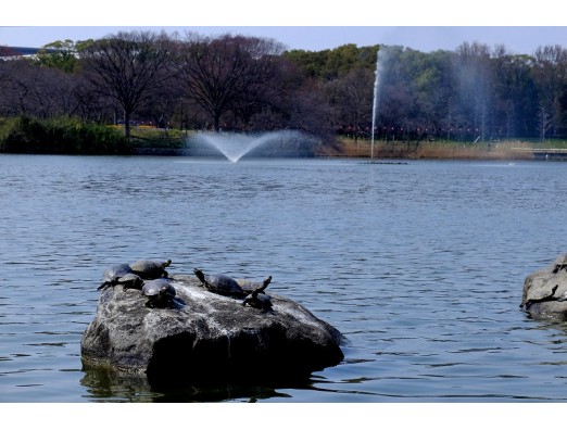 暖かい日の大池、甲羅干し風景。