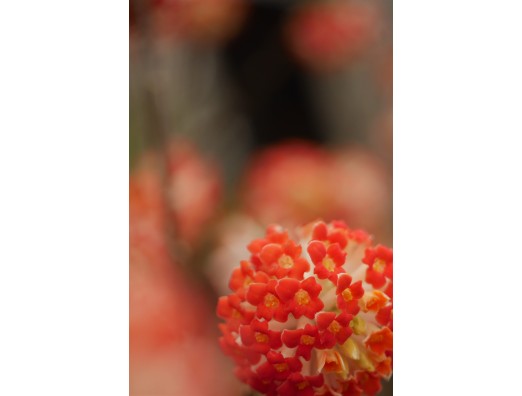 ミツマタです。赤いボールが、ポンポンと跳ねているような…。