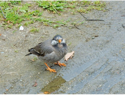 雨あがり。シャワーを浴びたような状態のムクドリを見つけました。