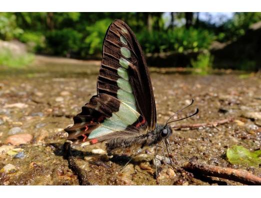 アオスジアゲハ、実は水分補給しながらお尻から 余った水を出しているところ。