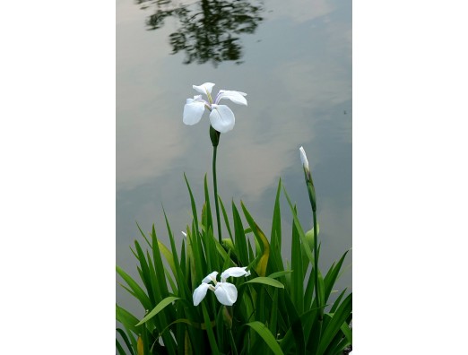 光がなくて 尚 静寂な感じがしました 今年お初の カキツバタです