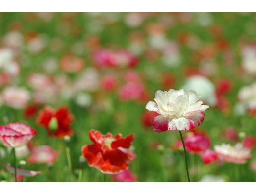 2017-5-20撮影 ライフガーデンを囲むベンチにはシャーレーポピーを愛でる人たちでいっぱいでした。