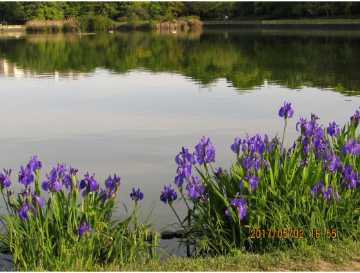 夕方、野鳥観察を切り上げて、出口に行く道を歩いていたら、このカキツバタが目に入りました。入園した時に通りがかった時とは光の当たり具合が異なっていて、とても美しく見えました。涼しげなカキツバタは、アヤメの仲間で最も好きな花です。
