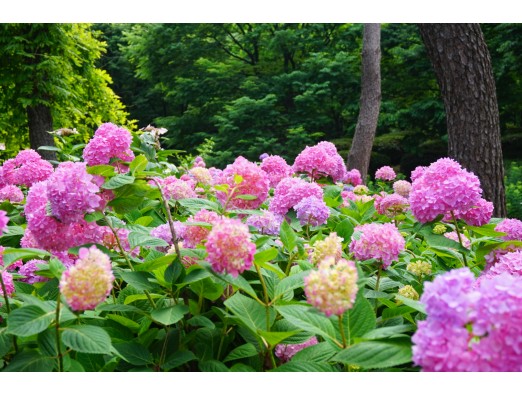 とても華やかで、まさしく「紫陽花の園」ですね。