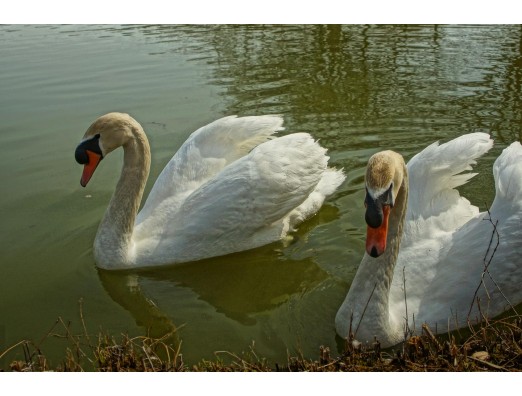 大池に何時もペアで泳いでいるコブ白鳥 絵画調で撮影してみました。