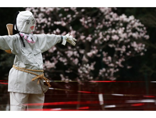 案山子を見るのは何年ぶりだろう? 大きく手を広げ、どんどん華やいでゆく季節の移り変わりを楽しんでいるかのようですね。