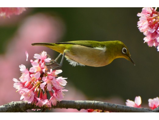 桜並木で桜の蜜を吸っていたメジロが不意に桜を飛び越えた瞬間が撮れていてすごく嬉しくなってしまいました