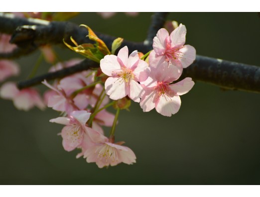 8日に来園時、河津桜が開花したのを見つけて感動、次の休みに行くと、丁度満開の桜に出会うことが出来ました、身近な場所で幸せな気分に浸ることが出来ました