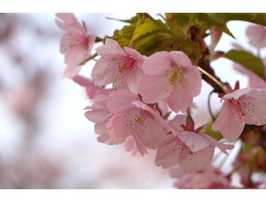 河津桜です。メジロが動く度に、カメラかかえたオッチャンたちが、アタフタと移動していました。