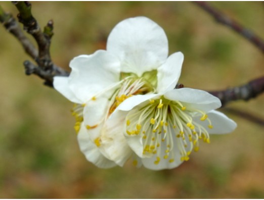 普通梅の花は、紅梅白梅共に萼片が赤茶色ですが、「緑萼梅」の萼片は黄緑色なのでこの名が有り。蕾は薄緑色に包まれている。