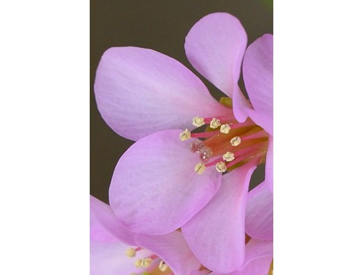 少し薄紫色がかった淡いピンク色と、くっきりとした5枚の花弁の余りの美しさに魅了されました