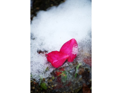 バレンタインの翌朝 雪の上に落ちるハート