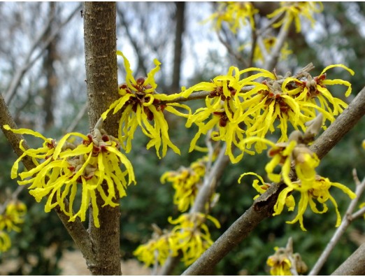 マンサク(満作)(Hamamelis japonica) マンサク科 マンサク属 花期、2~3月 樹高、200~500cm マンサクとは「まず咲く」とのことで、春が近づくと枯れ木の中に黄色い花をいち早くつけます。