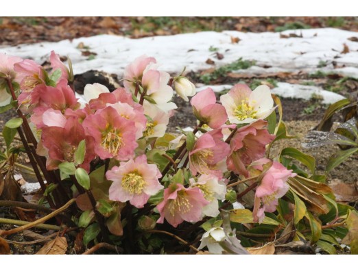 『残雪とクリスマスローズ』 長居植物園、渓流東側にて―――。 [Feb 15, 2014]