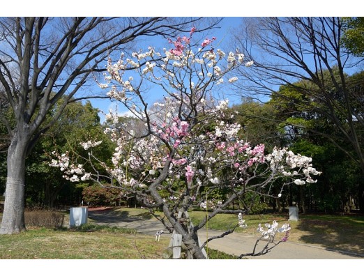 今年も無事咲いていました 紅白の花を同時に咲かせる梅の木 これを「源平咲き」と言うのだそうです