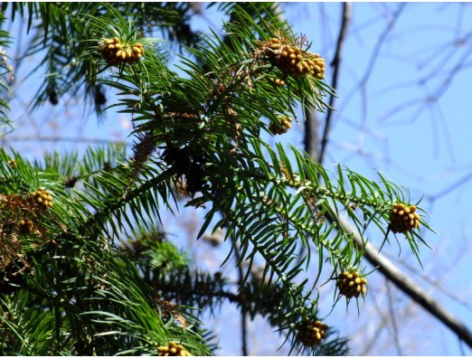 コウヨウザン(広葉杉)(Cunninghamia lanceolata Hook) 別名、カントンスギ、リュウキュウスギ スギ科 コウヨウザン属 花期、4月 樹高、30~35m 中国南部原産のスギ科常緑針葉樹で、日本には江戸時代に渡来。雌雄同株。