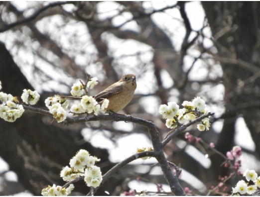 モズが梅の木に止まったので絵になるかと撮ったら、ミツバチを銜えていました。