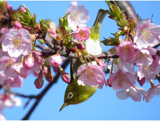 「河津桜(Kawazu-zakura)とメジロ」 長居公園自由広場にて―――。 [Mar 8, 2014]