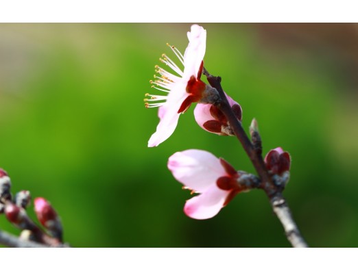 まだ弱弱しい幼いアーモンドの木ですが立派な綺麗な花を咲かせています。