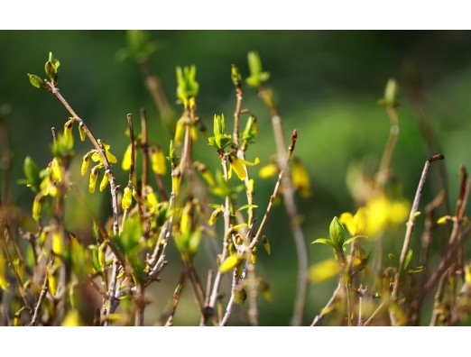 今年も黄色いレンギョウたちに枝垂れる桜を想像しながら。