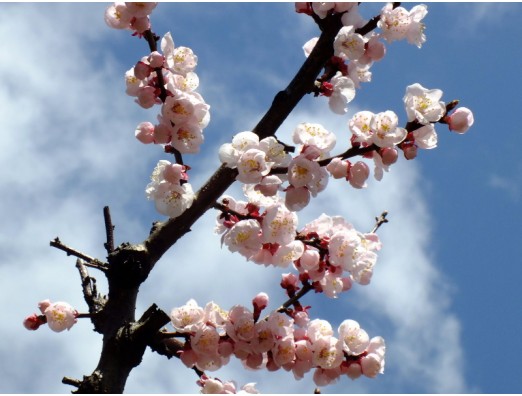 アンズ(杏)(Prunus armeniaca)バラ科 サクラ属 アンズの花にメジロ(目白)を待ってみましたが現れずでした。