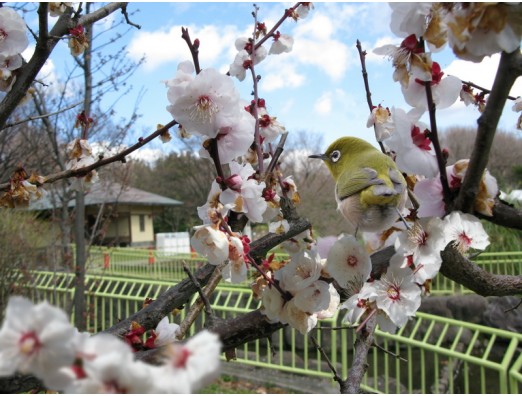 オオカンザクラと梅に飛び交うメシ゜ロ