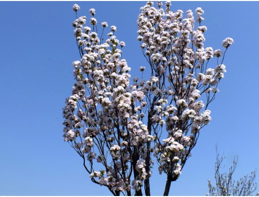 アマノガワ (天の川)( Prunus lannesiana Erecta) 、里桜 バラ科 サクラ属 花期、4月 樹高、5~10m 花は、花色は淡い紅色で、花弁数10~20枚で中輪八重、花が上向に咲くのが特徴。 2014年4月19日 長居公園