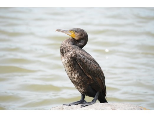 バラ園コーナから池の周辺散策路を進んで、鯉の大きさにびっくり。池の岩に一羽の鳥。 気分良さそうに、一向に動きません。 「気分最高だ」と、幸せだなと。。。誇らしげにね。