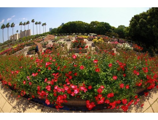 魚眼レンズでバラ園の全景が撮れて楽しいですね。。