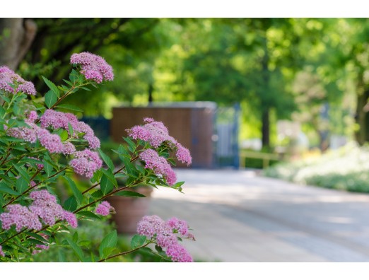 シモツケです。 満開です。 花と緑と自然の情報センター玄関のちょっと手前に咲いています。