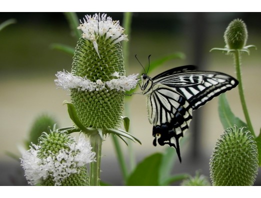 チーゼルの花には蝶や蜂がよく来ています。蜜が美味しいのかな。