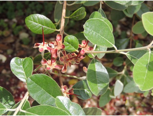 トロピカルフルーツなのですね。雄しべが終わりを告げ、花の中央から一本の真っ赤な針のような姿、雌しべでしょうか。印象に残る花樹ですね。
