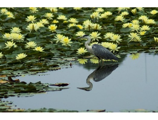 白鷺と睡蓮そして水面に映る姿が美しかったので撮影した。