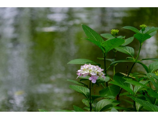 水辺に咲くアジサイ。 やはり、梅雨に時期の花には水辺が似合います。