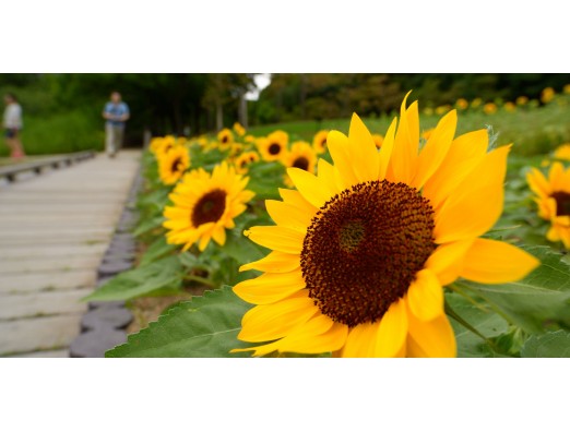 木道の横、かわいい背丈ですが、 大きなな笑顔で咲いていました