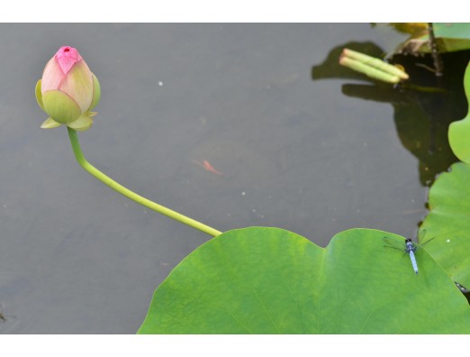 面白い茎の蓮と、トンボの組み合わせです。 たまたま撮影できました。