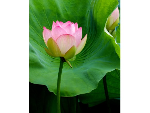 大きな葉を背にした蓮の花、 風が吹くとまるでゆりかごのよう。