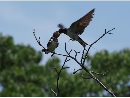 ツバメの幼鳥が、親鳥から餌をもらっていました 初めて見た光景です(その1)