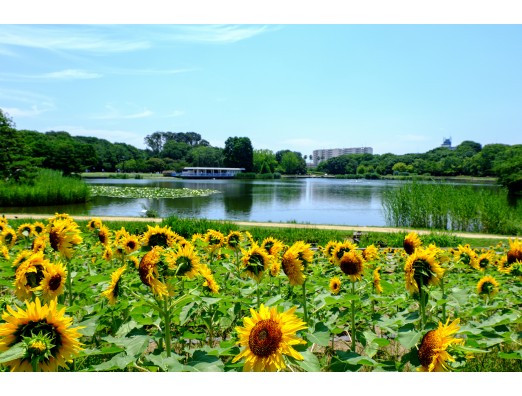 青い空とひまわり、もうすっかり夏に衣替えです。