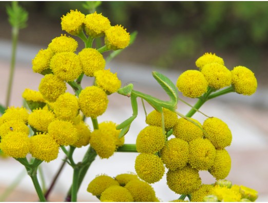 キク科の植物「タンジー(Tansy)」とハラビロカマキリの幼生―――。タンジーの茎の色と体色は見事にマッチ。生まれながらの知恵でしょうか…花を撮る為に近づきましたが、接近するまで全く気付きませんでした。幾多の苦難を乗り越え、無事成長して、この‘長居’の地に脈々と生命を繋げていって貰いたいものです☆