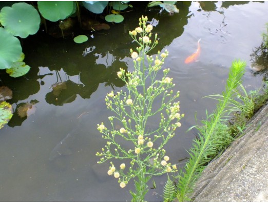 オオアレチノギク(大荒地野菊)(Conyza sumatrensis) キク科 イズハハコ属 花期、7~10月 草丈、1~2m 南米原産の帰化植物、秋に芽生えて冬ロゼット状で越冬する荒地野菊より大形で頭花には花弁が見られない。 2014年8月16日