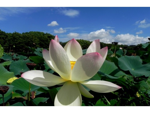 お盆が過ぎてカンカン照りの中、まだ元気に咲いていました。