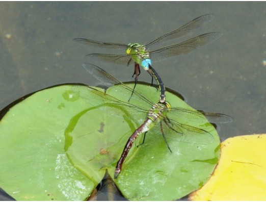 ギンヤンマ(銀蜻蜒)(Anax parthenope) ヤンマ亜科 大きさ、71~81mm 時期、4~11月 分布、全国 頭部と胸部が黄緑色、腹部が黄褐色。頭部と胸部の間が雄は青で、メスの腹部は、オスに比べて茶色っぽい。2014年9月6日 長居公園