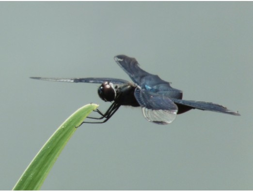 チョウトンボ(蝶蜻蛉) (Rhyothemis fuliginosa) ハネビロトンボ亜科 体長、32~41mm 時期、6~10月 分布 本州・四国・九州、 金属光沢の強い緑青色の幅広い翅を持ったトンボ。2014年9月6日 長居公園