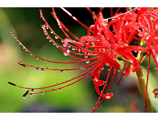 曼珠沙華が水滴を浴びて 美しく煌めいていました