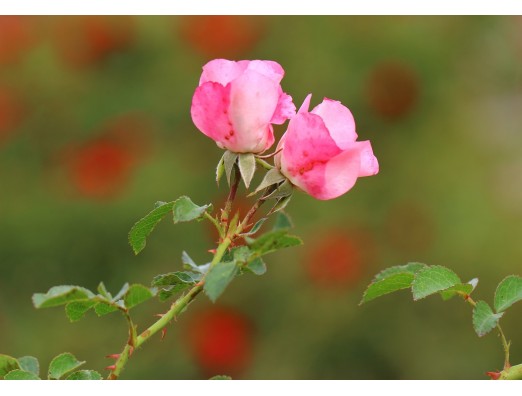 チャーミングななかよし。背景の赤い花もバラです。