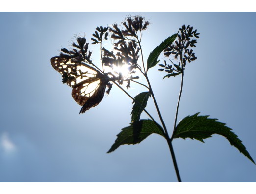 フジバカマにとまったアサギマダラ、まるで影絵のようです。