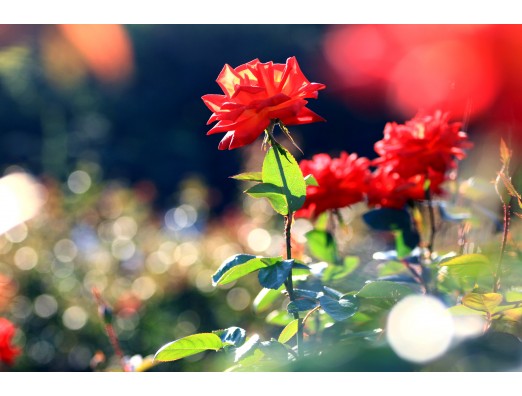 沢山の玉ボケが 赤薔薇の美しさに見とれていました